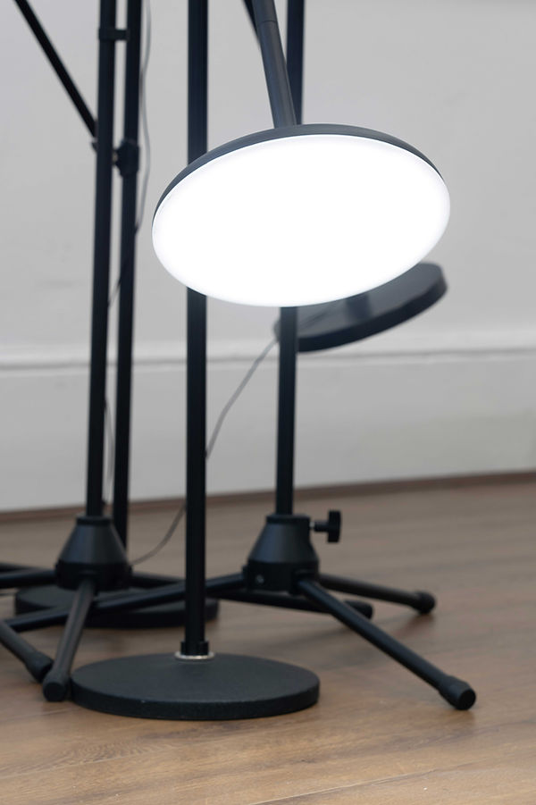 Daria Blum, Luminaries, Microphone stands, microphone clips, floor lamps, Dimensions variable, 2025